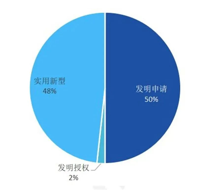 2015年以来,我国积极出台政策推进5G发展,迎来了5G的快速发展期,5G芯片技术获得关注,2017年申请专利10个,2019年5G芯片专利申请数最多达到了33个。主要受美国对中国5G芯片及企业发展的贸易制裁,增加了国内企业对5G芯片研发的投入及重视。从专利的分类看,主要以发明申请专利和实用新型专利为主,分别占比50%和48%。