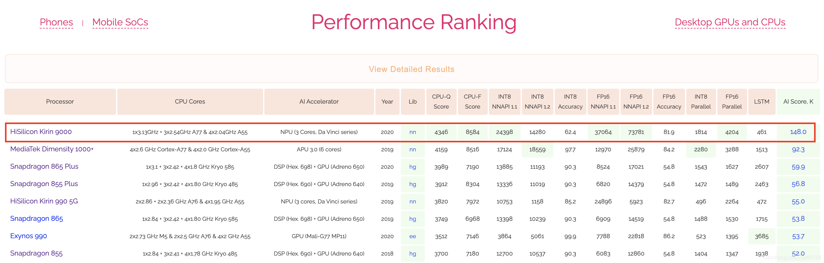 - 2020-10-23发表本文《AI Benchmark v4榜首风云:麒麟9000登上榜首》随着麒麟9000的发布,9000登上了榜首【注:Kirin 9000是2020-10-22晚发布,国内看到也就是23号早上了】。