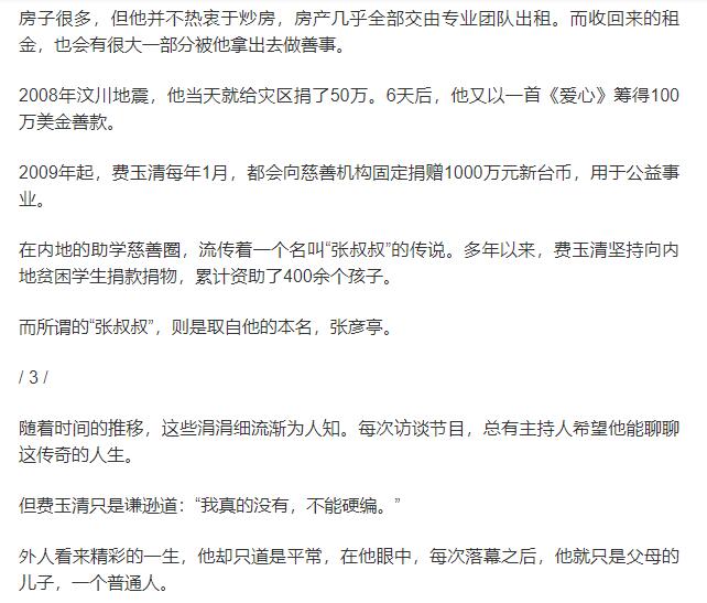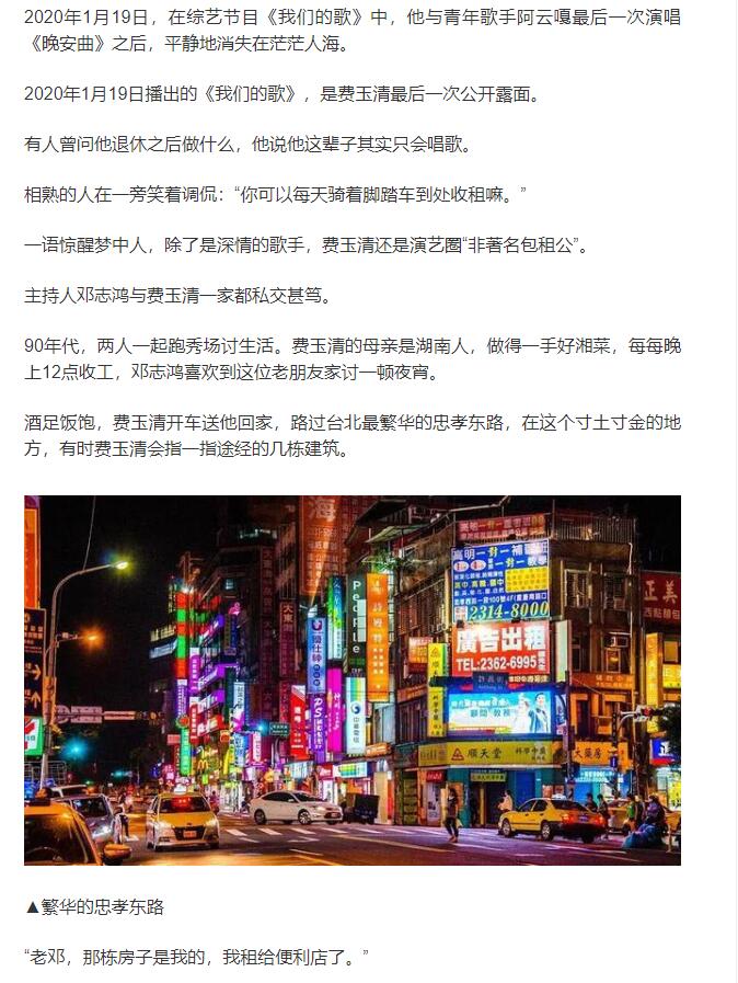我记忆力最深刻的是前几天看的那个费玉清的新闻,