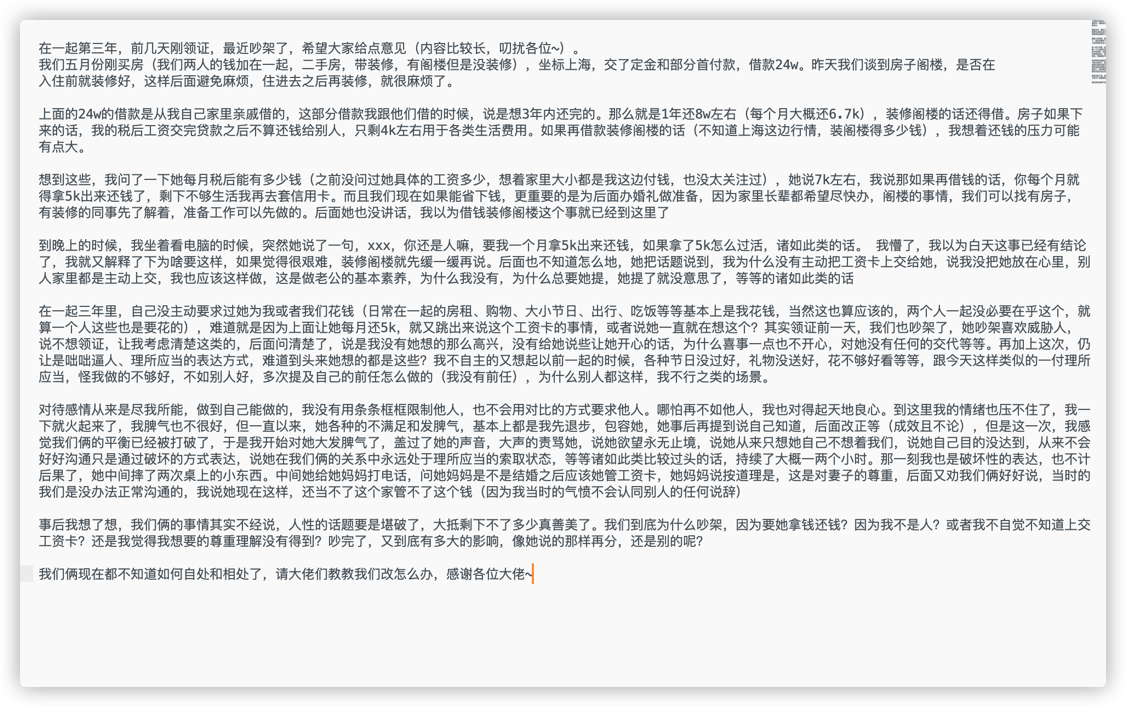 @小小比卡丘 :说实话有时候压力挺大的,不过我喜欢发泄到这里来,主要是这样的,自己工作了也快5年了,待遇和身边的人比不了,另外一件事情是老婆那边的亲戚家都挺有钱的,老婆家境一半,上次父亲节和他们亲戚一起吃饭,他们亲戚讽刺我家里一般,住的房子巷又不宽松,又黑又暗,说实话,心里挺不好受的。
