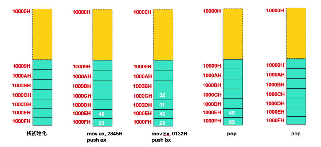 ❝这里注意一点:8086 CPU 中的入栈和出栈都是以字为单位进行的。
