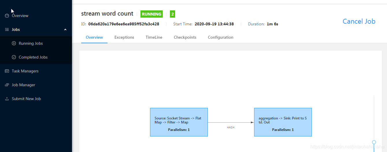 我们再前往Flink管理界面中,查看任务已经数运行状态了