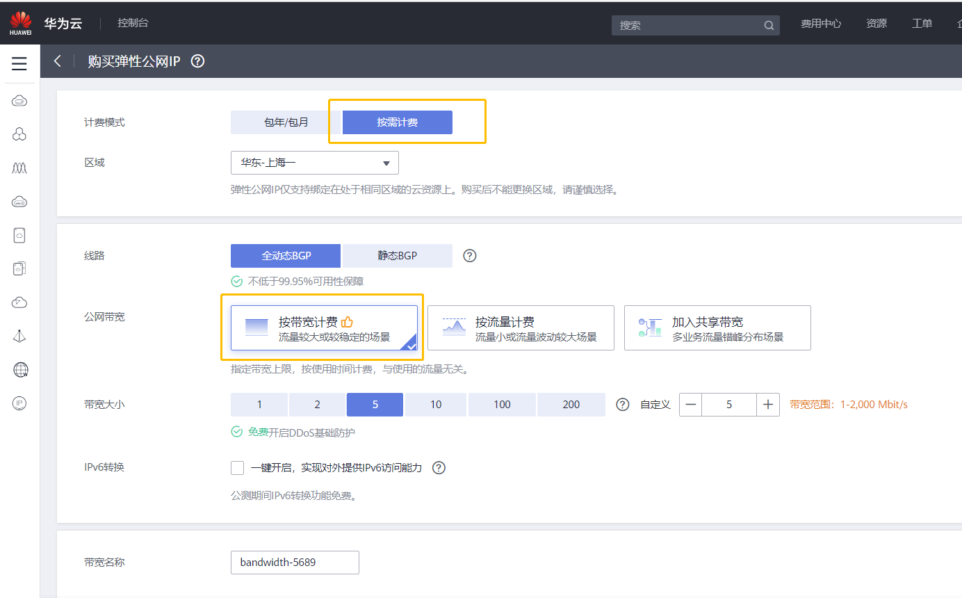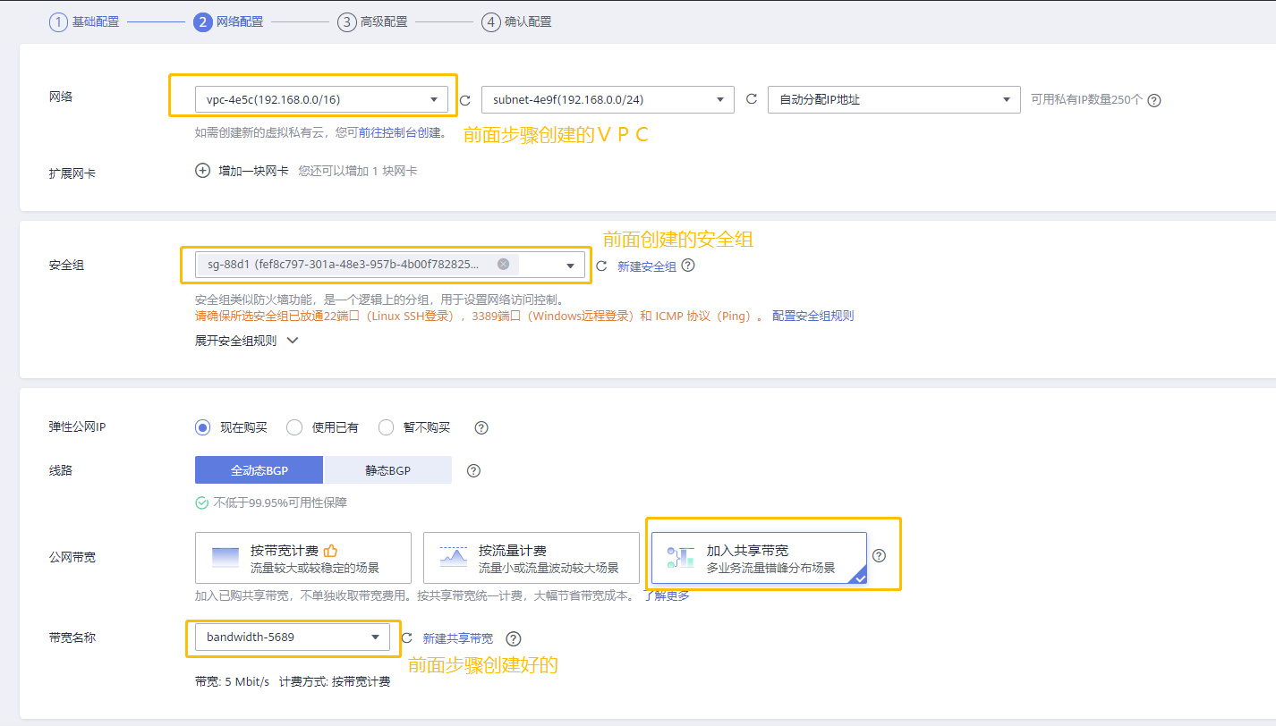 我们搭建好的网站,是希望能通过公网访问或者对外提供服务的;公网连接是选择独享带宽或者共享带宽;对于业务压力和流量负载没有过高要求的情况,我们可以把多个EIP绑定在同一个共享带宽上,使该带宽资源得到最大化利用并节省开支。