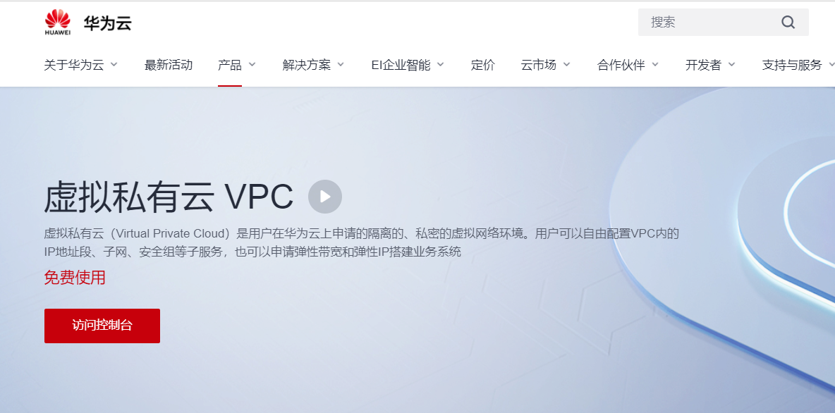 虚拟私有云(Virtual Private Cloud)是我们在华为云上申请的隔离的、私密的虚拟网络环境。我们可以自由配置VPC内的IP地址段、子网、安全组等子服务,也可以申请弹性带宽和弹性IP搭建业务系统。