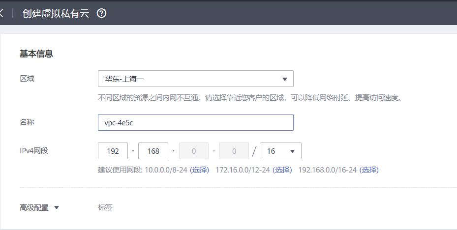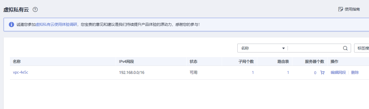 配置完成后点击右下角“立即创建”,进入VPC列表可查看到已创建的VPC。
