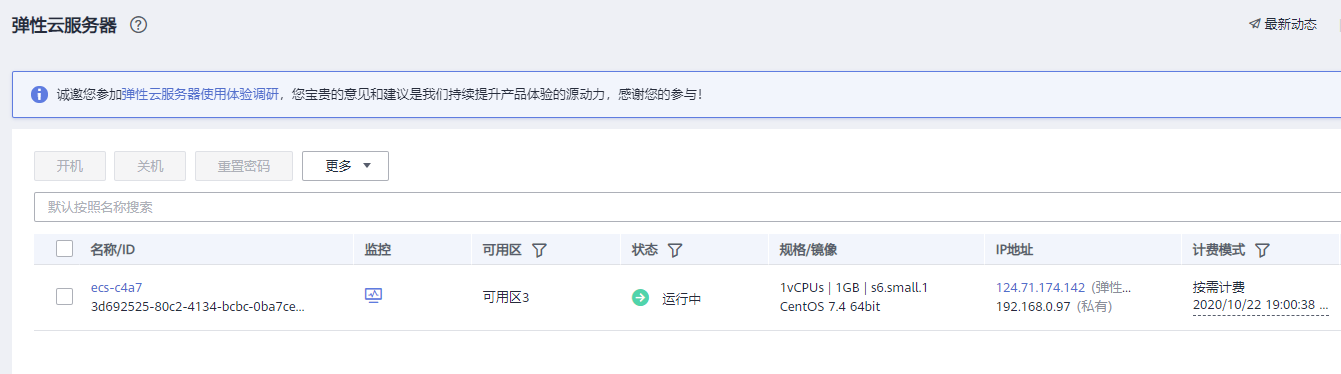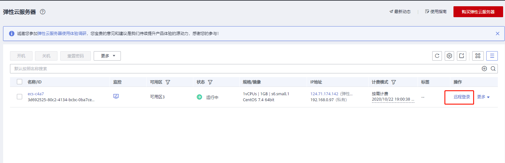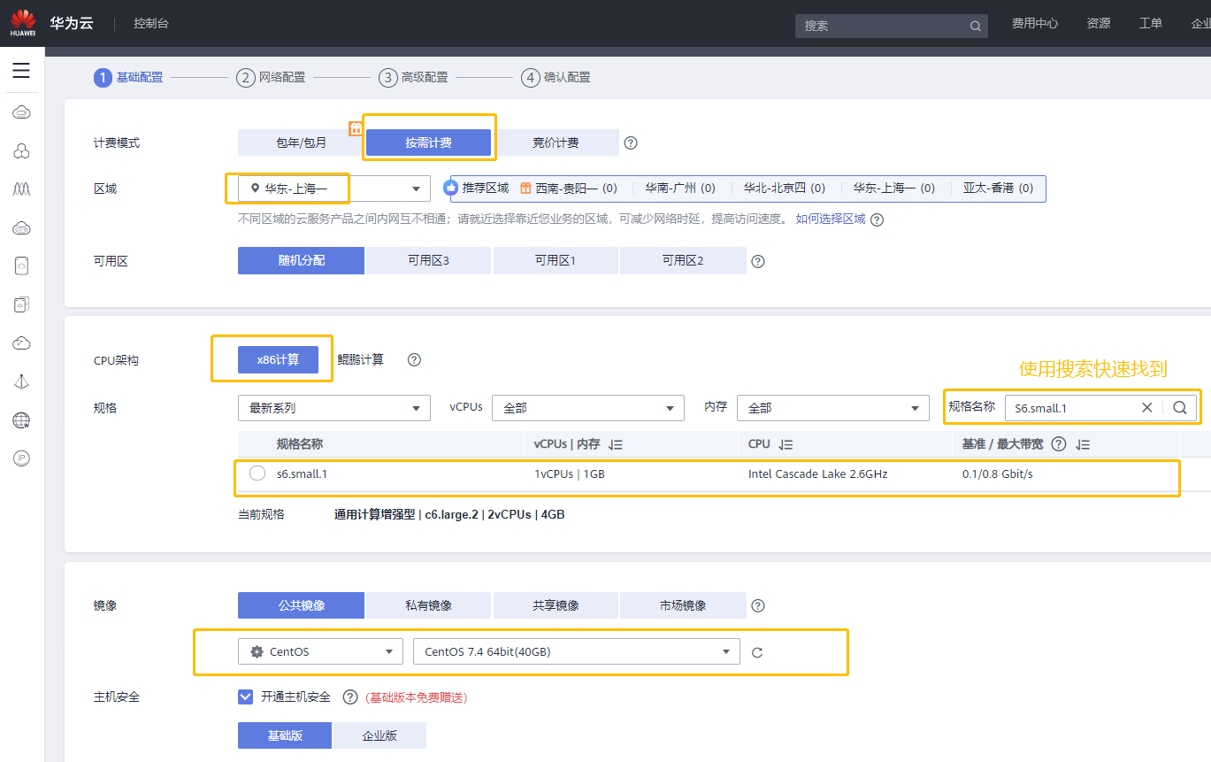点击右上角“购买弹性云服务器”,配置参数如下: