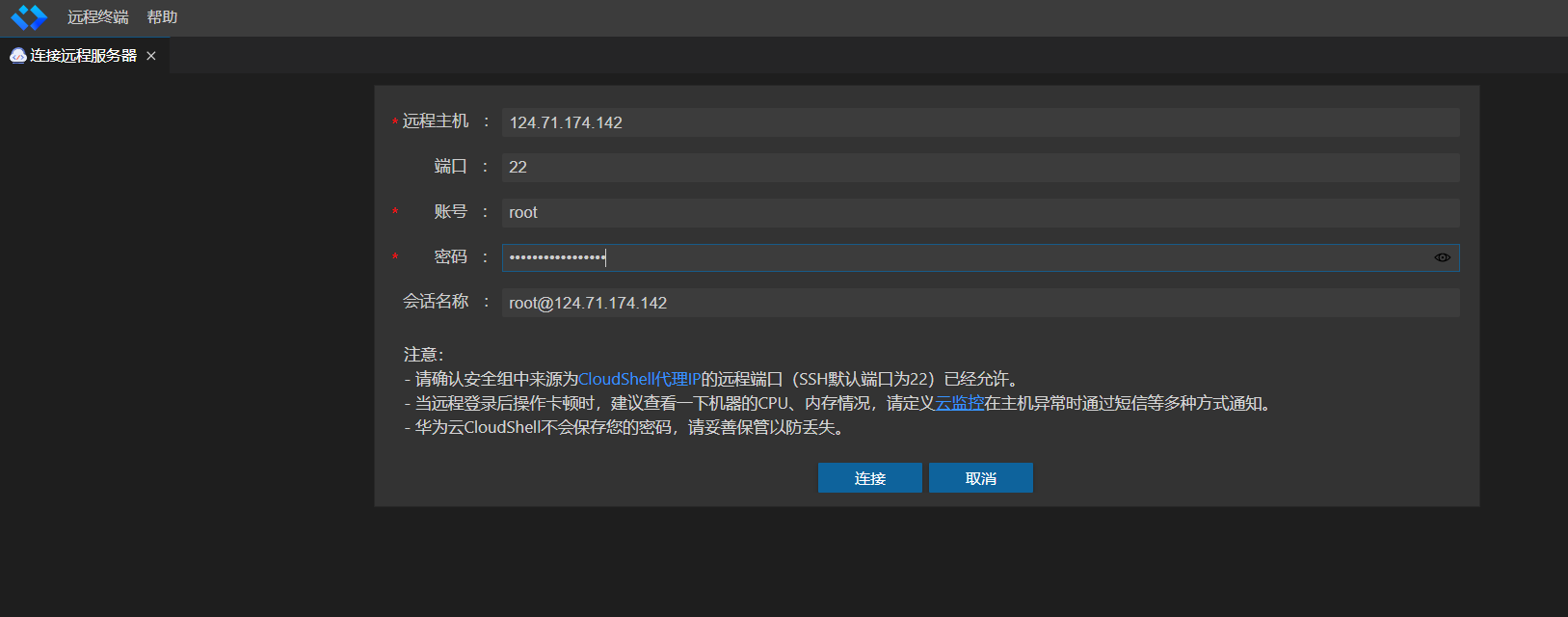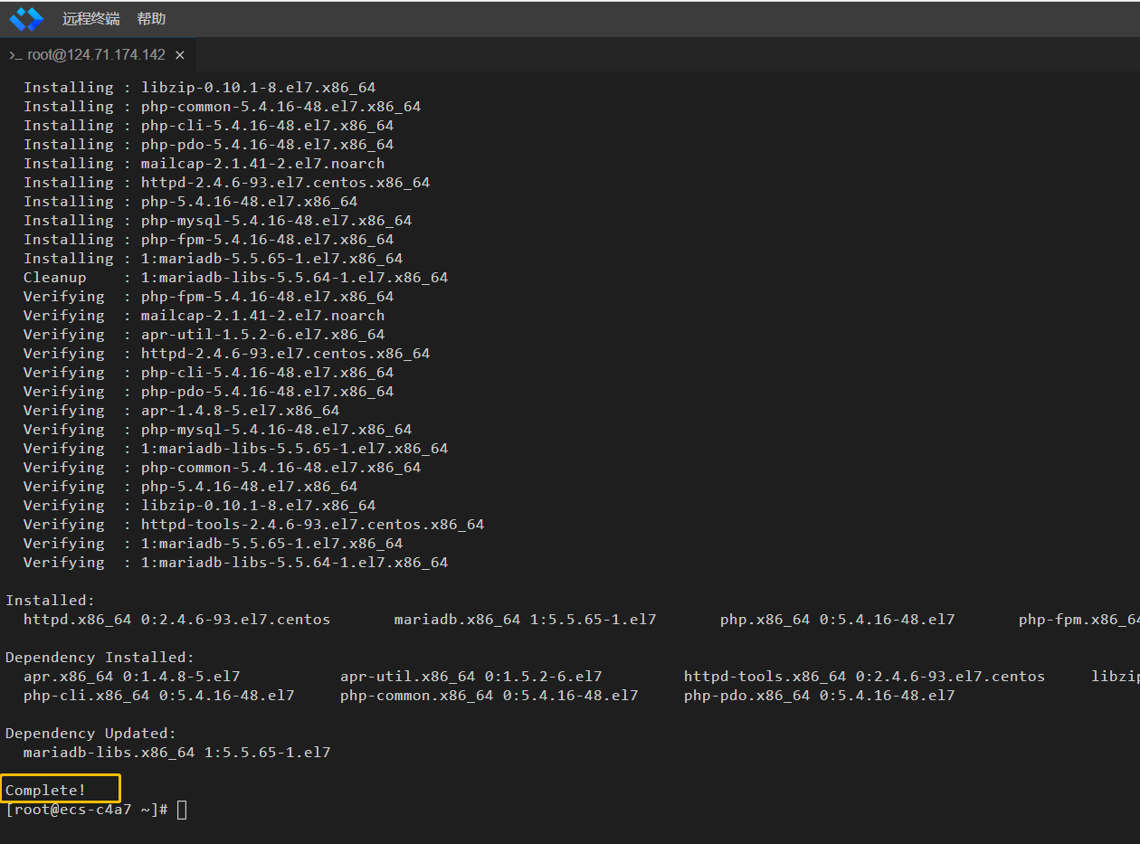 其中 124.71.174.142 是我在上面步骤申请的公网IP,根据自己的创建的IP填写。