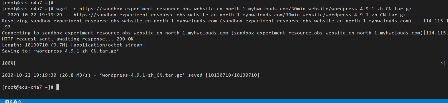 wget -c https://sandbox-experiment-resource.obs-website.cn-north-1.myhwclouds.com/30min-website/wordpress-4.9.1-zh_CN.tar.gz