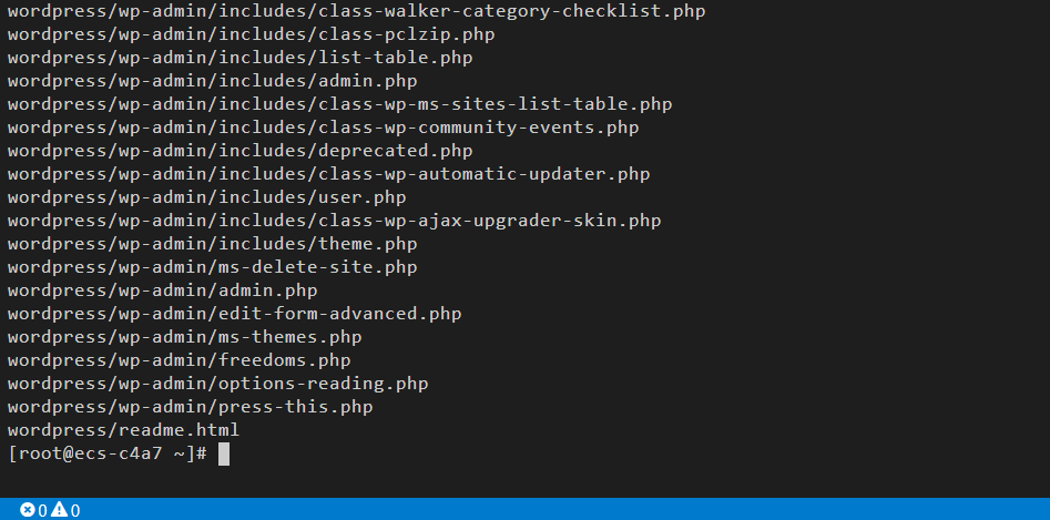 运行至“wordpress/readme.html”行结束,显示如下图所示。
