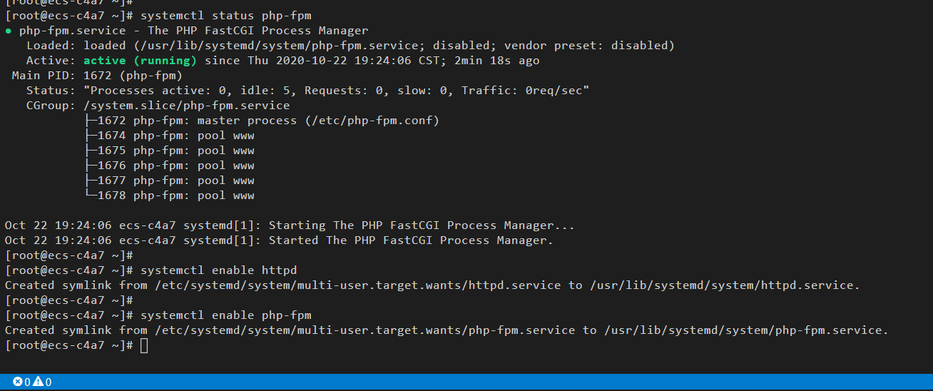 键入如下命令,将php-fpm服务设为开机启动:拷贝代码