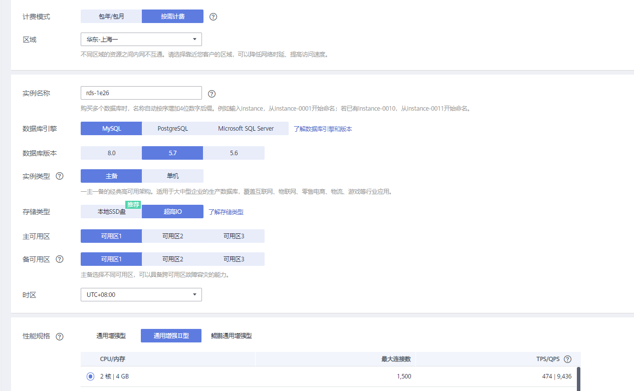 点击右上角“购买数据库实例”,并按下图配置相关信息: