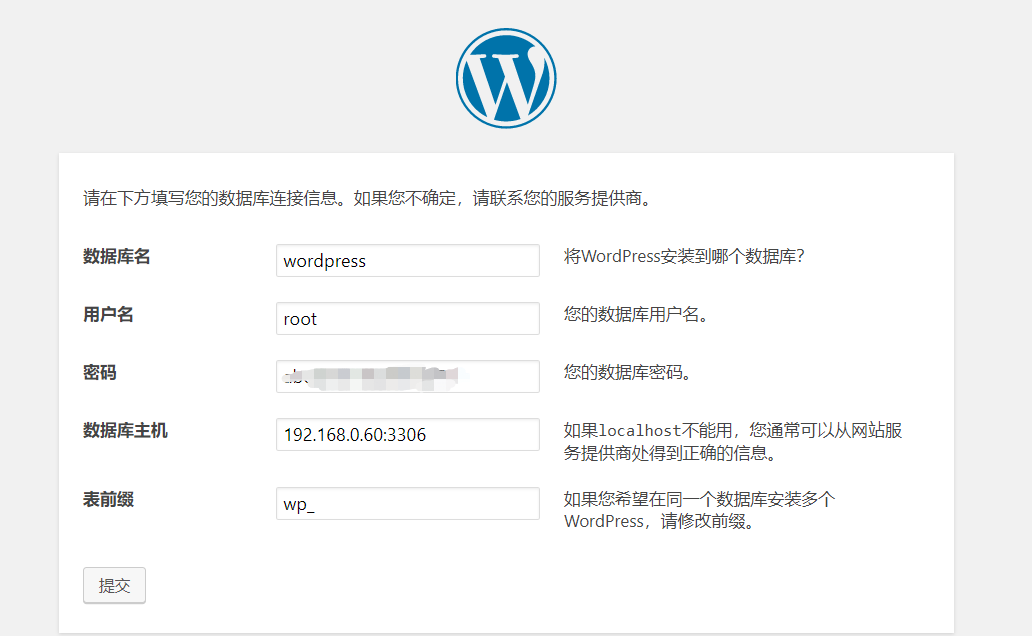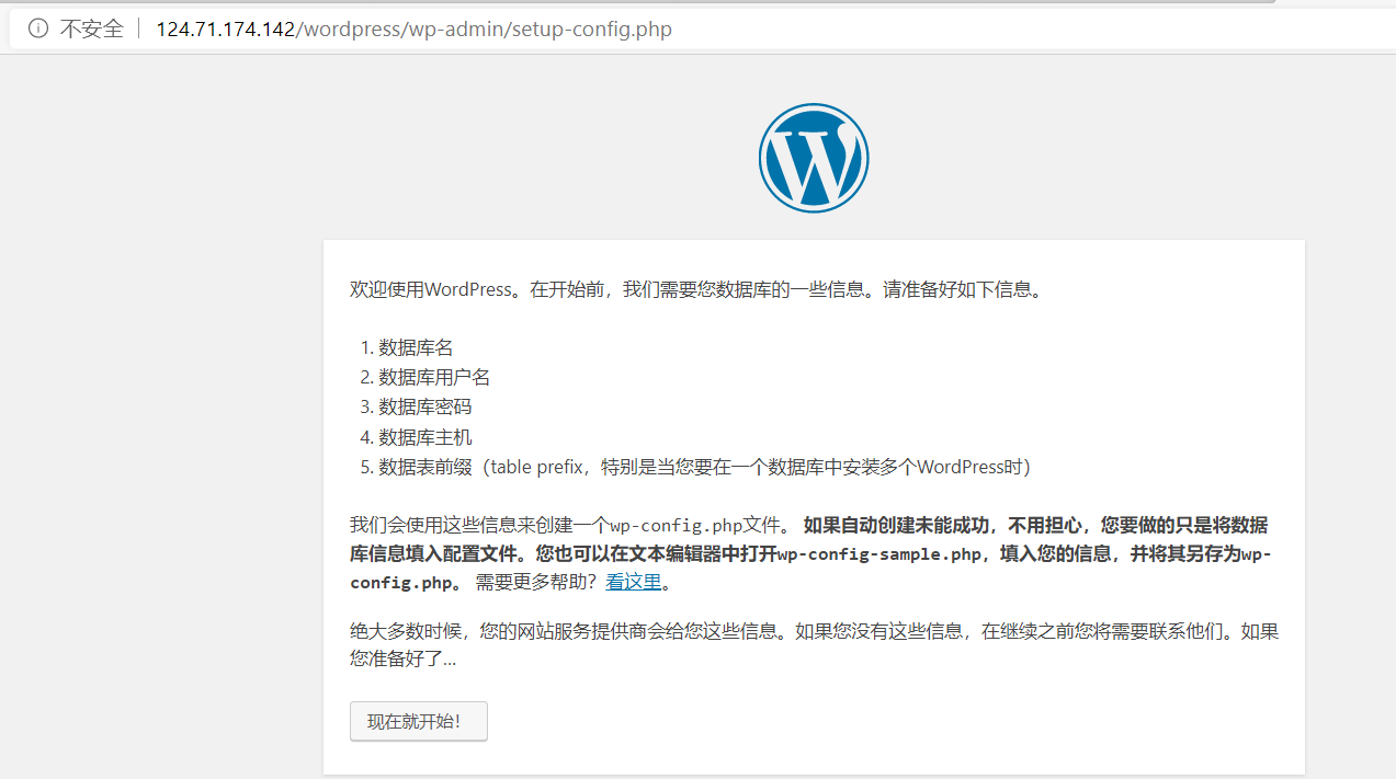 进入数据库配置页面在浏览器地址栏中输入以下地址访问WordPress: