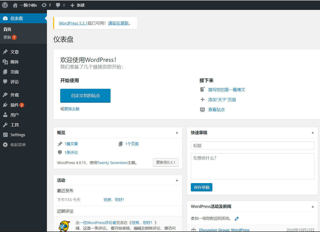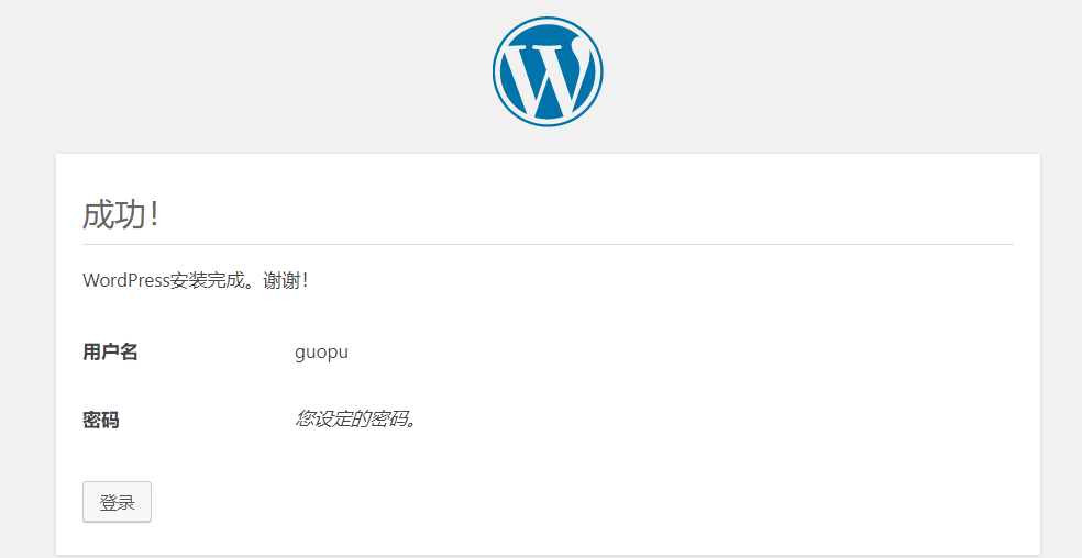 根据上述操作已创建可登录的WordPress网站,登录后进行数据库及网站的简单配置即可正常使用。