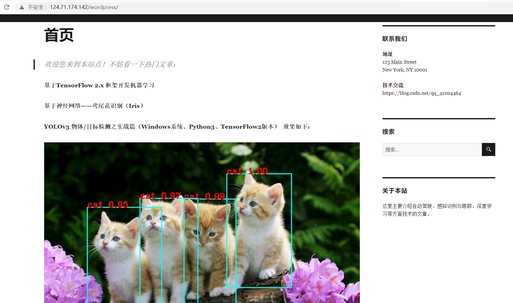 注意:请使用云服务器的公网IP替换访问地址中的【ECSIP】。例如:http://124.71.174.142/wordpress