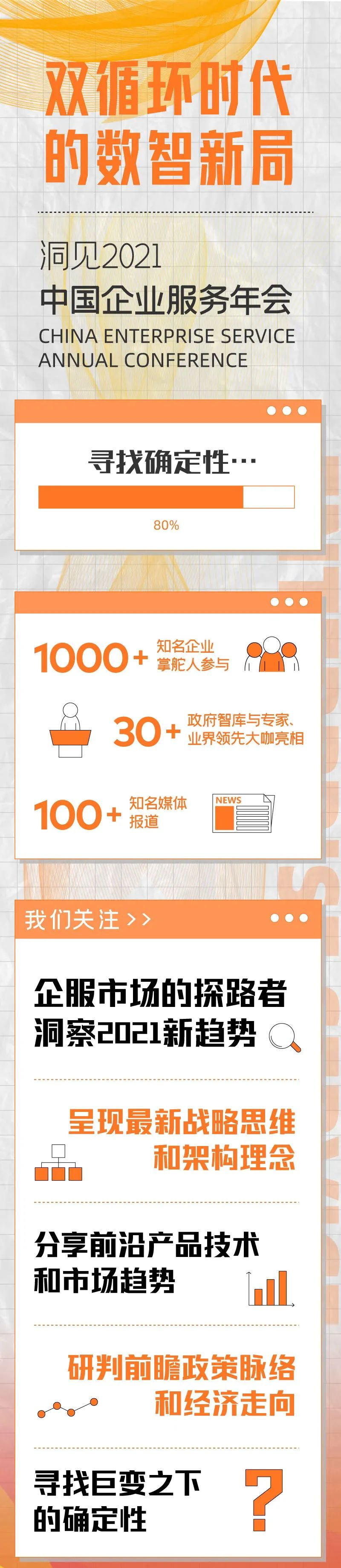 这也是2021中国企业服务年会所关注的。11月19日,以“双循环时代的数智格局”为主题的洞见2021中国企业服务年会将在北京隆重举行。届时,让我们一起探讨工业互联网的发展与应用,找寻企业价值增长的核心引擎。
