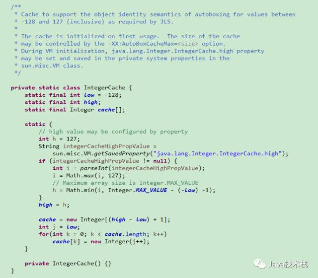 上面是IntegerCache的源码,把从-128~high放在缓存中