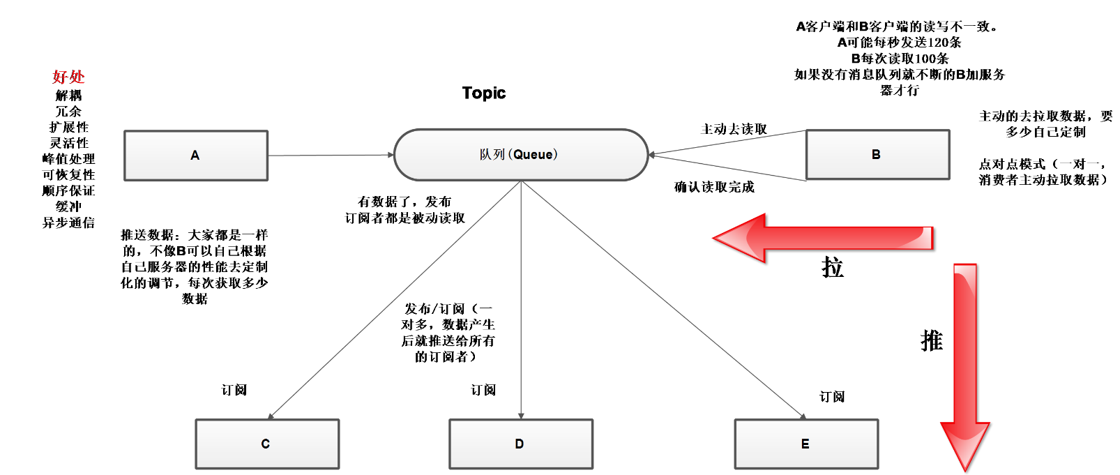 扩展性:消息队列解耦了处理过程,所以增大消息入队和处理频率是很容易的,处理过程中只要额外增加,只做维护,要多少取多少。