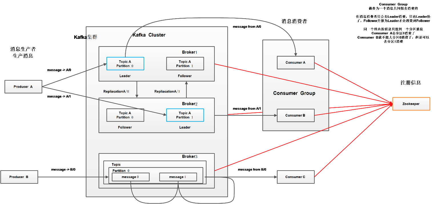 Topic的消息会到所有的Consumer Group,但每个分区只会把消息发送到该Consumer Group中的一个Consumer。