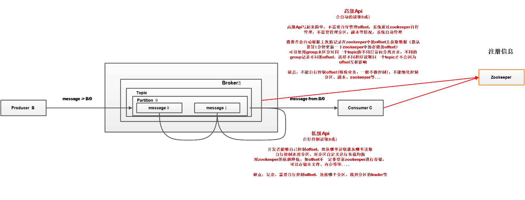 Consumer:消息消费者,就是从Kafka broker取消息的客户端。