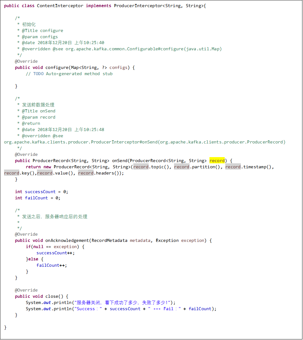 生产者拦截器JavaApi接口:ProducerInterceptor