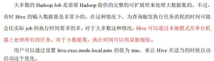 - 当输入的数据量十分小时,考虑采用本地模式进行优化;