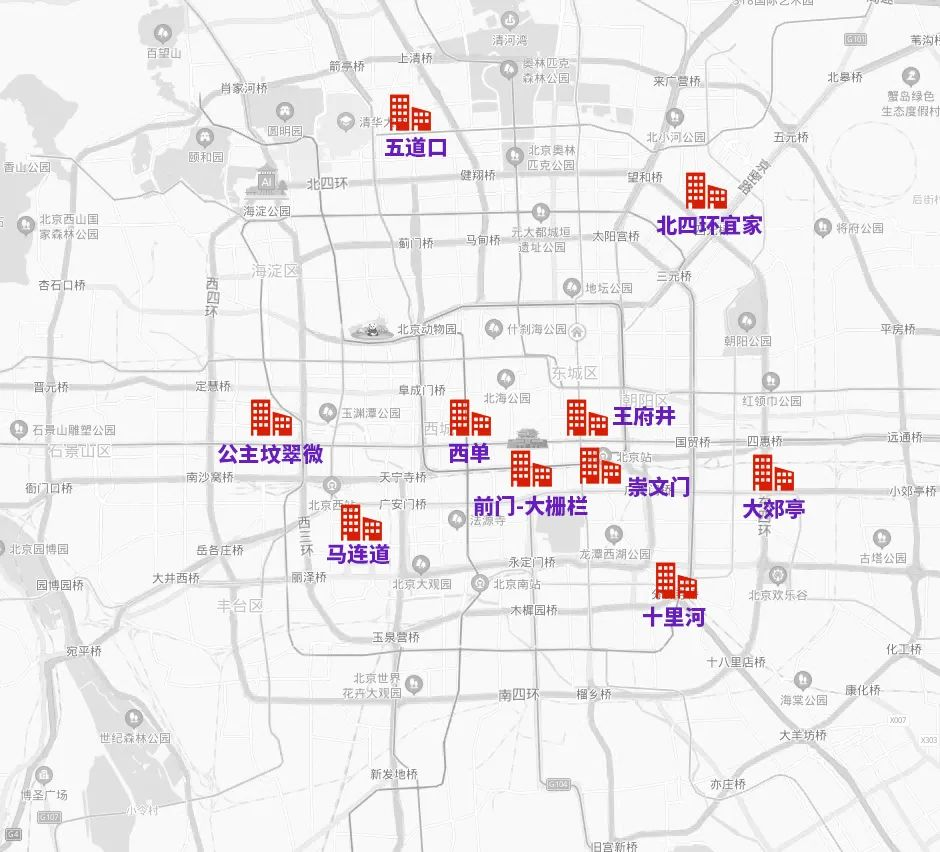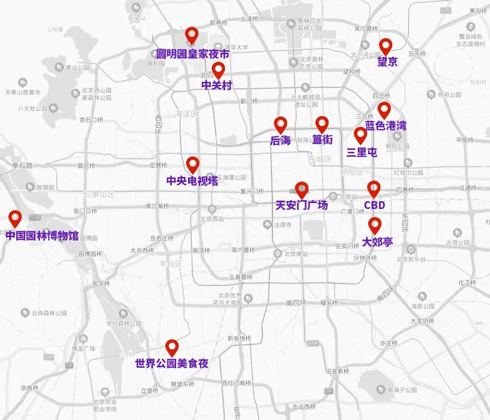 以及大郊亭、十里河、崇文门、西单、王府井、前门—大栅栏、马连道、北四环宜家、公主坟翠微、海淀五道口等商圈最为热门,周边道路容易出现车流集中的情况。