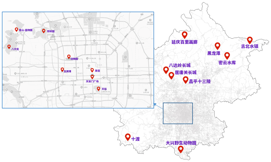郊区的房山十渡,通州大运河森林公园,昌平十三陵、八达岭—居庸关长城,密云水库、古北水镇、黑龙潭,大兴野生动物园,延庆百里画廊等景区以及部分郊野公园将吸引游客前往,周边道路车流将相对集中,交通压力较为突出。