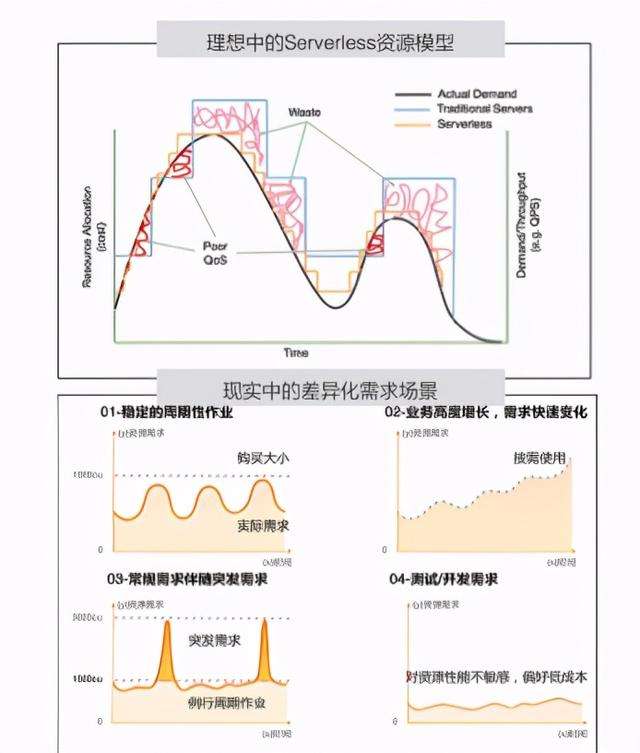 - 每天、每月周期性的峰谷波动巨大,以峰值容量规划,成本和SLA难以平衡;
