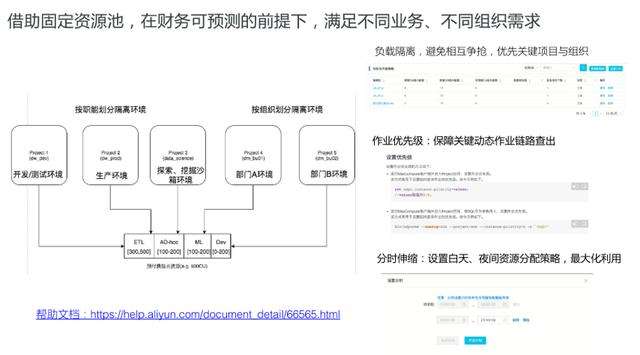 (2)对于预付费的资源,我们可以通过quota管理,切分多个计算资源,做相应的负载隔离、分时管理,利用dw+mc基线作业优先级保障关键作业SLA。
