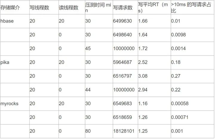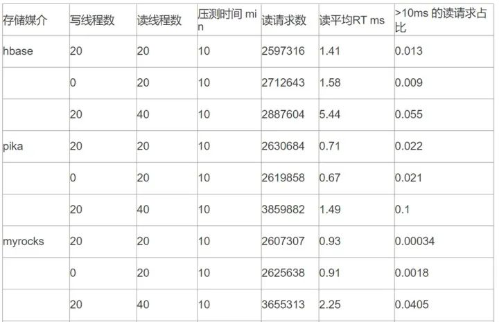 在网易内部的某更新密集型业务场景下,也获得了较好的性能表现,除了有不弱于KV存储系统的写入性能外,在读性能上还占据了一定的优势。对比如下: