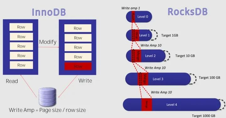 熟悉MySQL的同学们都知道,InnoDB目前是在MySQL上占统治地位的存储引擎。其具备了一个关系型数据库存储引擎应该拥有的绝大部分特性,如强大而完整的事务机制等,MySQL官方已经将InnoDB作为MySQL不可分割的一部分,新加入的MySQL系统表均使用InnoDB而不是MyISAM。那么为什么Facebook不使用InnoDB而另起炉灶基于RocksDB开发MyRocks呢。显然,RocksDB肯定有他过人之处,下面将从多个维度进行对比分析。