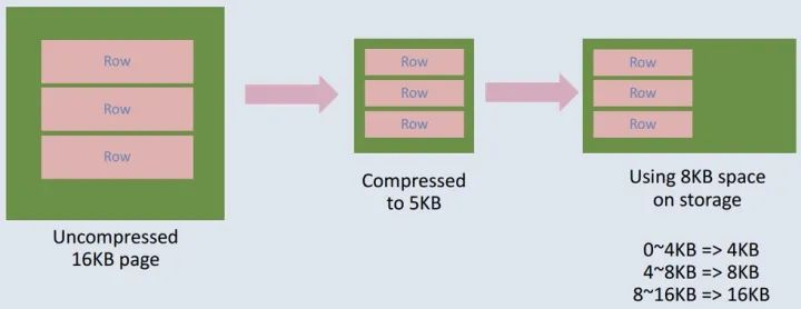在之前的文章中我们介绍过InnoDB基于记录的压缩机制,大概的实现方式是将16KB页(Page)中每条记录的部分字段进行压缩,再将压缩后的所有记录按照指定的页大小进行存放。比如设置的key_block_size为8,即压缩后按照8KB进行存放,若压缩后页大小为5KB,则浪费了3KB的存储空间。InnoDB在MySQL 5.7版本引入透明页压缩,但仍存在上述的问题。