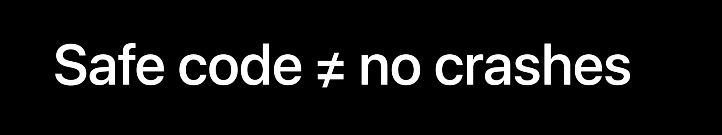 需要注意的是,安全的 API 不是为了防止崩溃。相反的。而是当给定的输入超出其约束范围时,安全的 API 会通过引发致命的运行时错误来确保停止执行。这些情况表明存在严重的编程错误:我们的代码在关键逻辑上出现错误,我们需要马上去修复它。规避崩溃而继续执行将是不负责任的。(译者:当然在我个人实际工程开发里面,我更习惯于在核心关键代码出加上比较详细的 log 日志。)