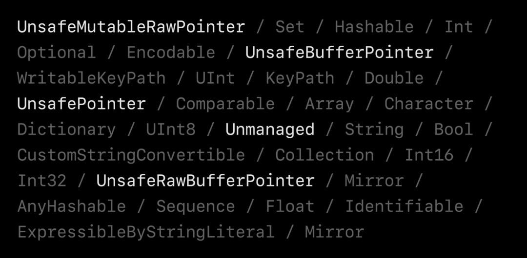 标准库中提供了许多不同的结构,类型,协议,功能,属性等,其中少量被明确标记为不安全。