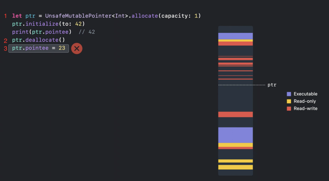 当我们访问的值包含对象引用,或者内存现在包含不兼容类型的Swift值时,此类错误特别危险。