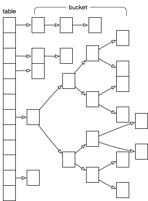 - 其底层数据结构是数组称之为哈希桶,每个桶里面放的是链表,链表中的每个节点,就是哈希表中的每个元素;