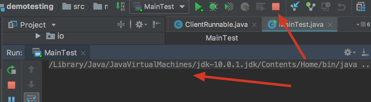 发现结果如下图,请求调用后没有返回,但是main方法也没有结束,通过debug可以知道是因为inputStream.read(response))这一句代码是阻塞调用,因为一直没返回结果,因此main方法阻塞,如下图: