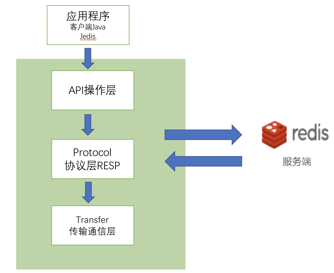 - 我们在Java应用程序的客户端通过访问包装的API进行Redis访问,API使我们直接可以看懂的调用入口;