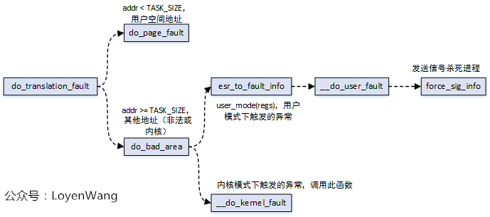 do_translation_fault,实际中do_translation_fault最终也会调用到do_page_fault; - 出现1/2/3级页表访问权限的时候,会调用