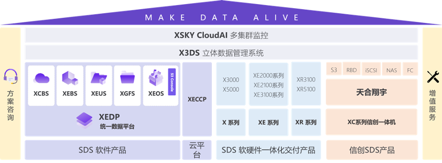 鉴于上述背景,信创生态的数据存储如何破局?软件定义存储市场头部企业XSKY在日前首次向外界公布了其信创战略和布局,并将首款信创产品 “天合翔宇”初步投入用户端生产运行。