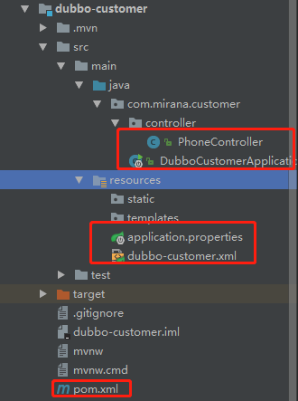 pom.xml添加dubbo-api(具体实现类要实现dubbo-api的IPhoneService接口)和Apache Dubbo的Maven依赖,红色部分为新增依赖