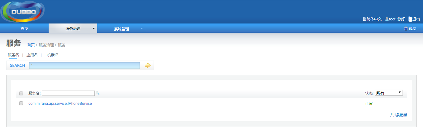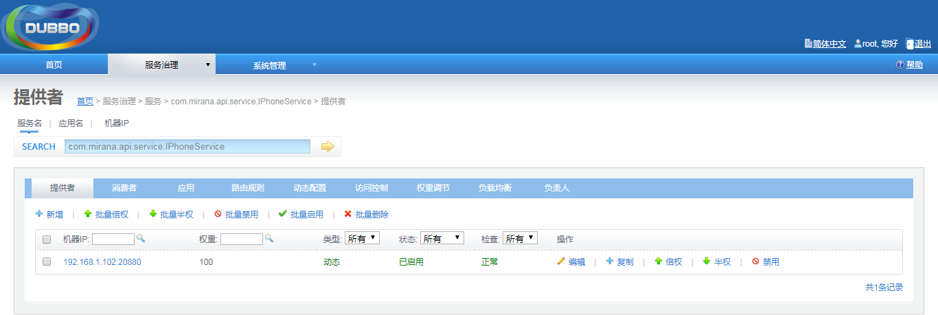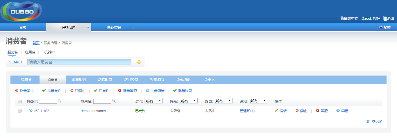http://localhost:8080/dubbo/,输入用户名root密码root