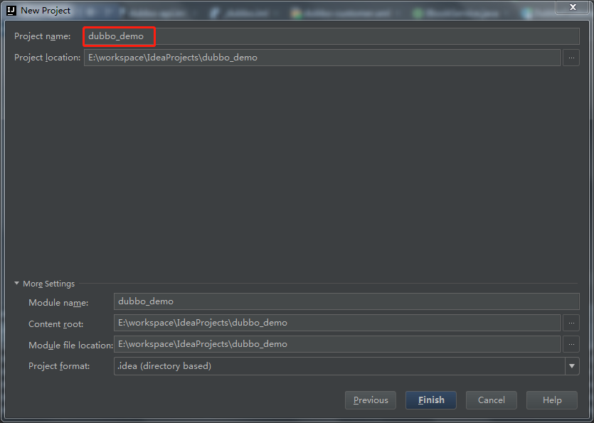 3、一路Next,最后选择项目名称(之前创建过dubbo的项目,这里重命名为dubbo_demo)