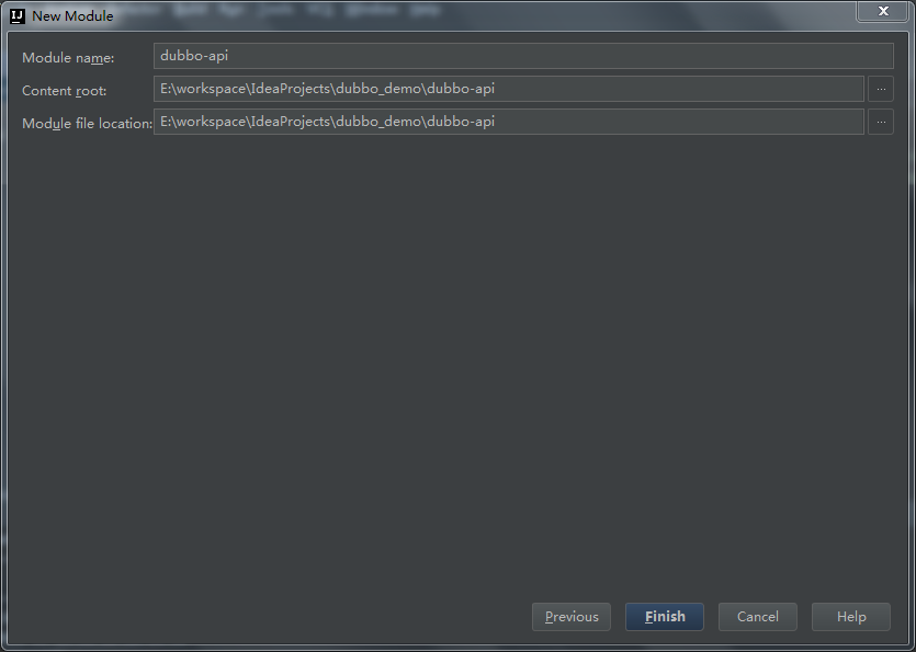 1、添加子模块dubbo-api,项目右键-->new-->Module