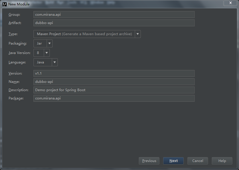 二、添加基于SpringBoot的三个子模块dubbo-api、dubbo-provider、dubbo-customer