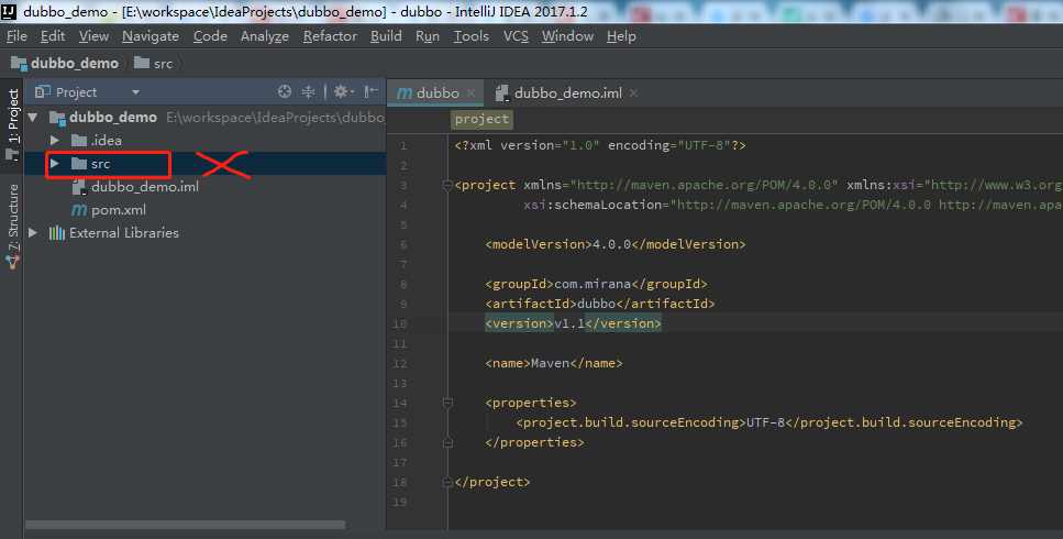 4、生成项目,修改pom.xml(不修改也不影响子模块),删除src