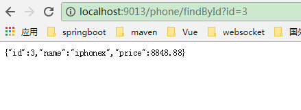 查找id为3的手机:http://localhost:9013/phone/findById?id=3,返回的json数据如图
