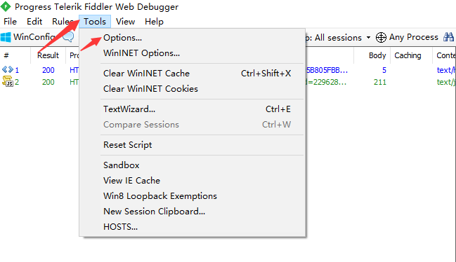 - 关闭Fiddler,再打开Fiddler,配置完成后重启Fiddler(重要)