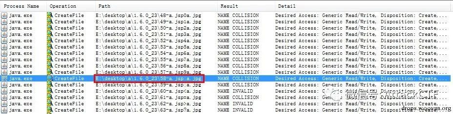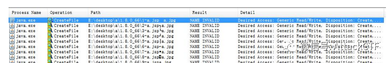 使用Procmon查看上述过程中java.exe进程执行的写文件操作。