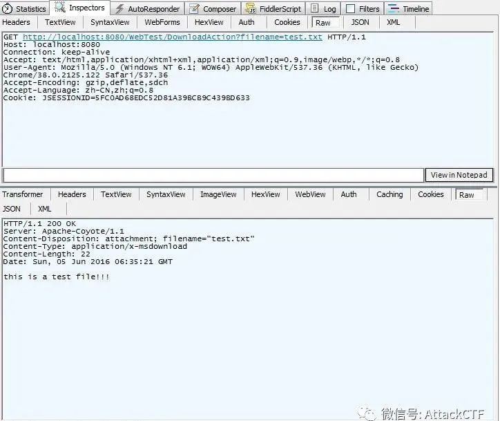 使用DownloadAction下载web应用根目录中的“download/test.txt”文件如下图所示。